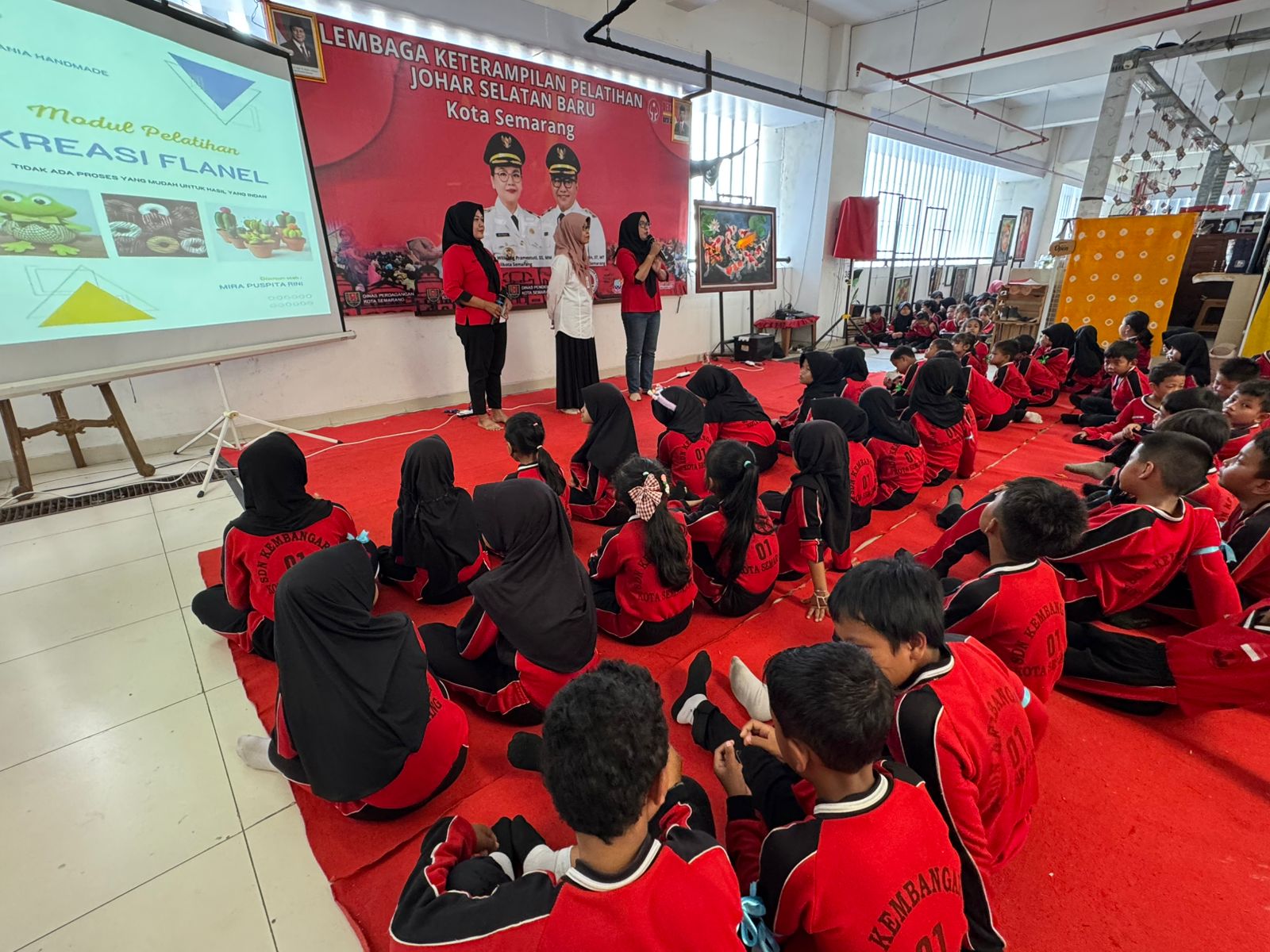 SEMARANG, MEDIAINI.COM  — Sebanyak 176 siswa SD Negeri KembangArum 01, Kota Semarang, mengikuti pelatihan kreasi vandel yang digelar oleh Lembaga Keterampilan dan Pelatihan (LKP) UMKM JOHAR SELATAN. Kegiatan ini menjadi bagian dari program pendidikan non-formal yang bertujuan menumbuhkan kreativitas serta semangat kewirausahaan sejak usia dini.