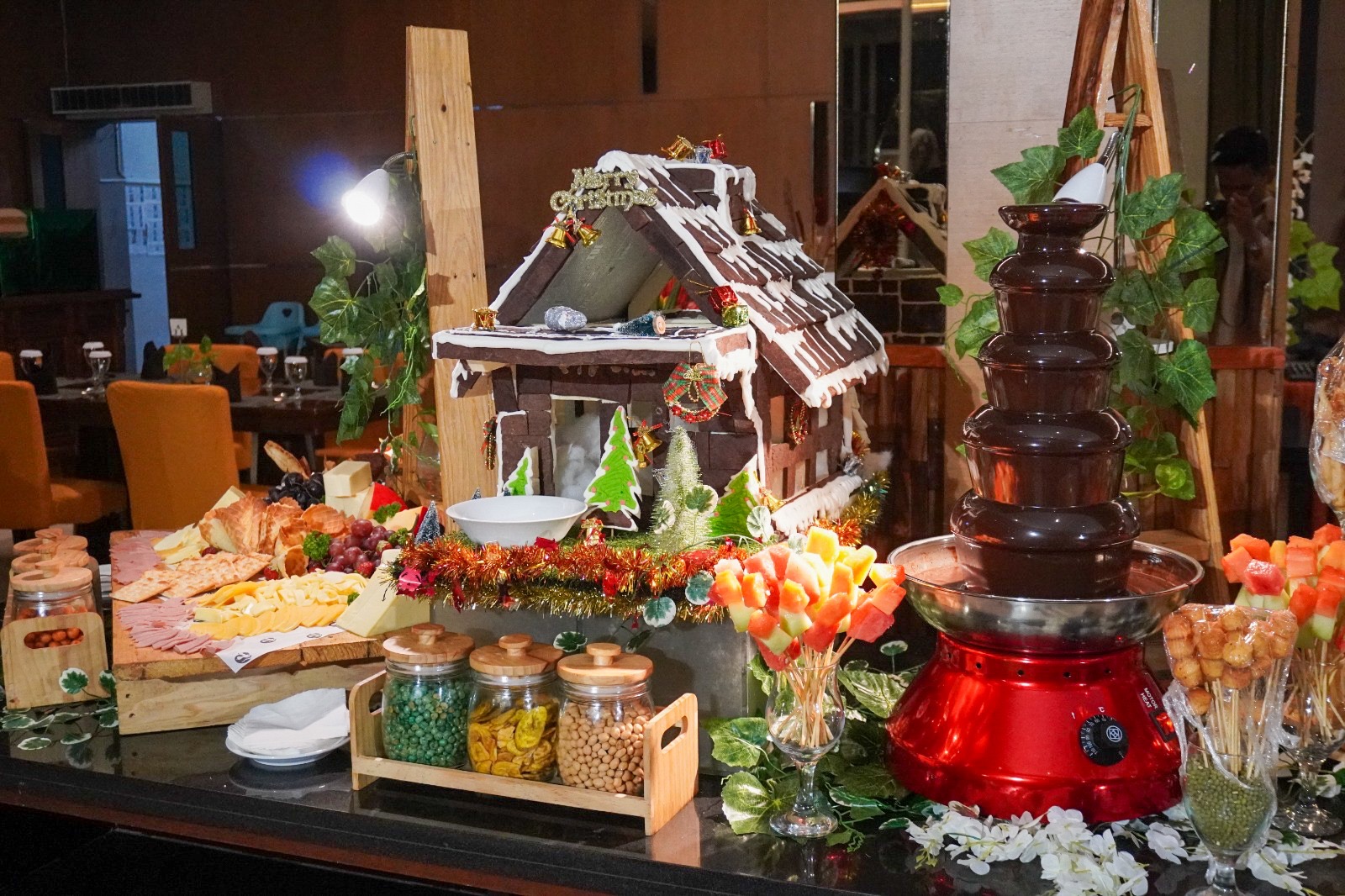 Perayaan Christmas Dinner yang digelar pada 25 Desember 2025 ini menghadirkan ragam menu buffet khas Natal, dessert corner dengan tema Christmas, live entertainment, area foto tematik, meet the Santa, hingga doorprize menarik bagi tamu yang beruntung. Dekorasi ruang bergaya Natal dengan nuansa merah, hijau, dan emas semakin memperkuat atmosfer hangat khas perayaan akhir tahun.